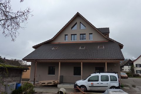 BaubeschreibErsatzbau Ökonomieteil sowie Umbau Wohnhaus (neues Dach), Wohnhaus kommunal unter Schutz